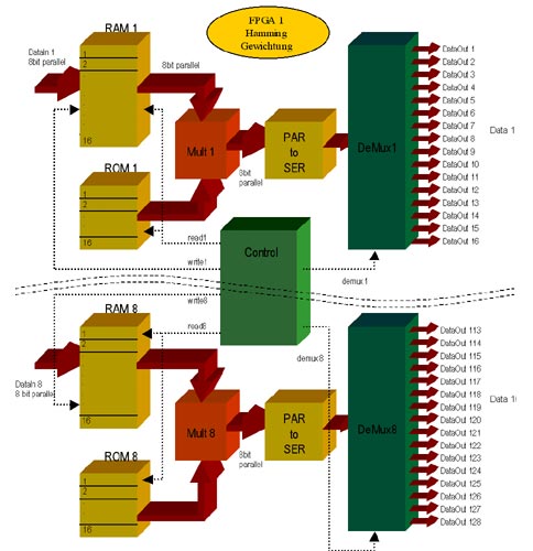 in zwei Xilinx FPGAs XCV1000-6 zu implementieren. Ein Umstieg auf