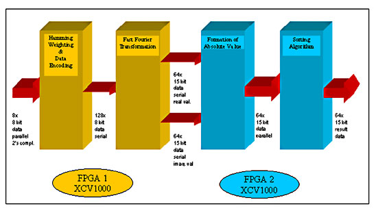 couple of tasks, in two Xilinx XCV1000-6 FPGAs. Unfortunately the